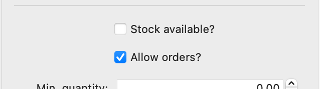 - Made the checkbox 'Allow orders?' in the Product's setting permanently visible, because on reflection it's a more general setting than being bound to the 'Stock available?'-checkbox.